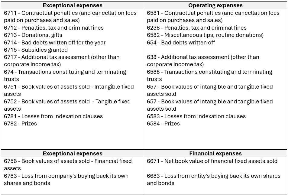 - Examples of normal and routine activities: Disposal of a fixed asset, disputes, penalties paid or received on purchases and sales, production stoppages, consequences social contributions and tax audits, impairment of equity securities held in subsidiaries.