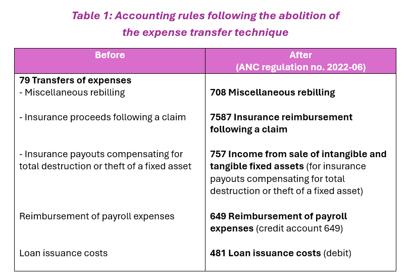 - Adaptation of some accounting rules (related to the abolition of the expense transfer technique)